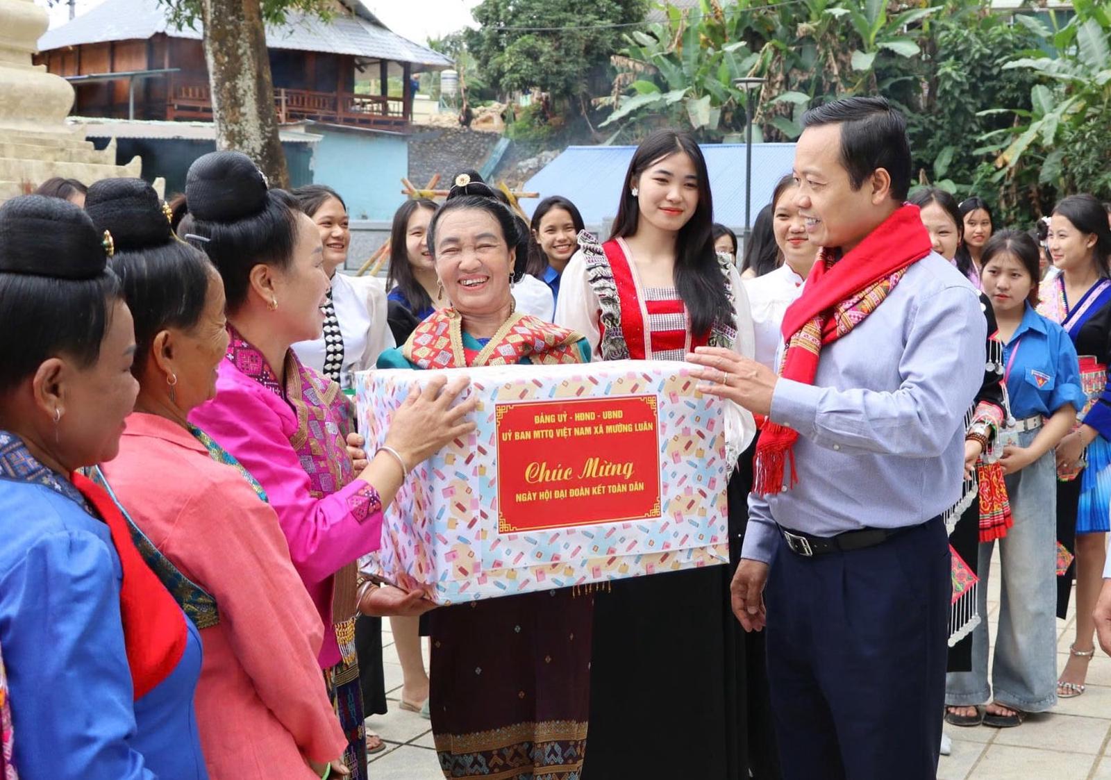 Bí thư Tỉnh ủy Trần Tiến Dũng tặng quà người dân bản Mường Luân 1, xã Mường Luân nhân ngày hội Đại đoàn kết dân tộc năm 2025. Ảnh: Báo Điện Biên