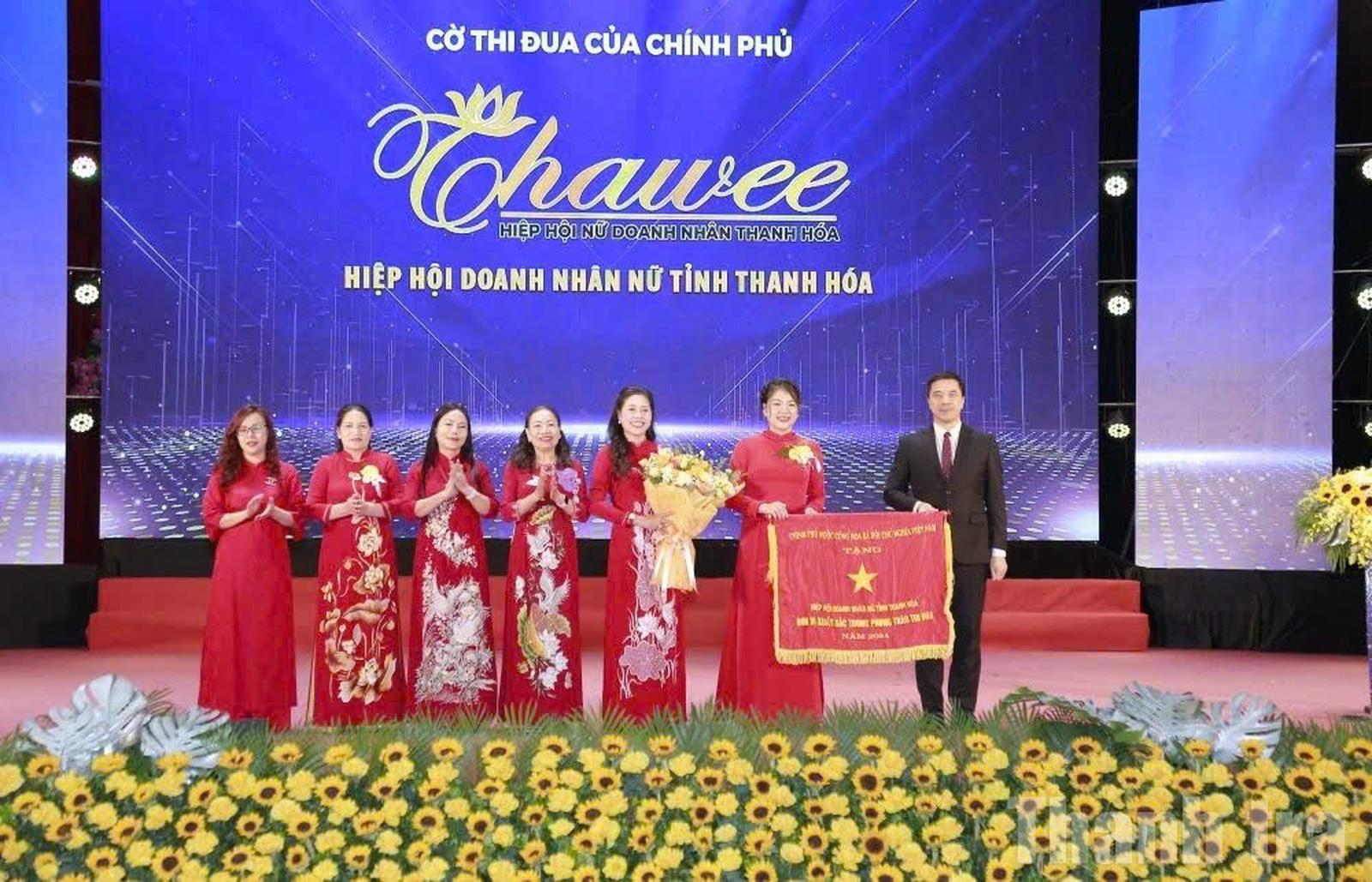 Hiệp hội Doanh nhân nữ tỉnh được nhận cờ thi đua của Chính phủ. Ảnh: Văn Thanh