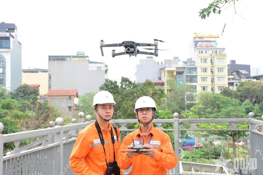 | Sử dụng thiết bị không người lái rà soát lưới điện. |