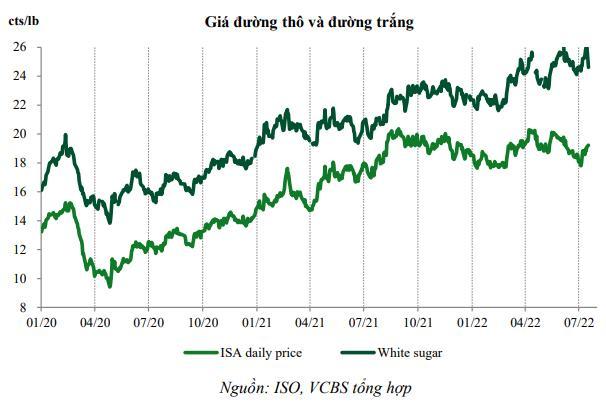 Trong khi đó, dù bắt đầu điều chỉnh giảm nhẹ trong tháng gần đây nhưng giá đường từ đầu năm 2022 đến nay vẫn đang ở mức cao nhất trong 5 năm. Từ cuối 2021, sản lượng đường của Ấn Độ và Thái tăng cùng với thời tiết thuận lợi tại Brazil đã gây áp lực giảm giá đường thế giới, tuy nhiên việc giá dầu thô tiếp tục duy trì ở mức trên 100USD cùng với xu hướng bảo hộ lương thực trỗi dậy trên toàn cầu đã giữ cho giá đường vẫn ở mức cao, nhiều chuyên gia dự báo giá đường sẽ tiếp tục tăng trong thời gian tới.