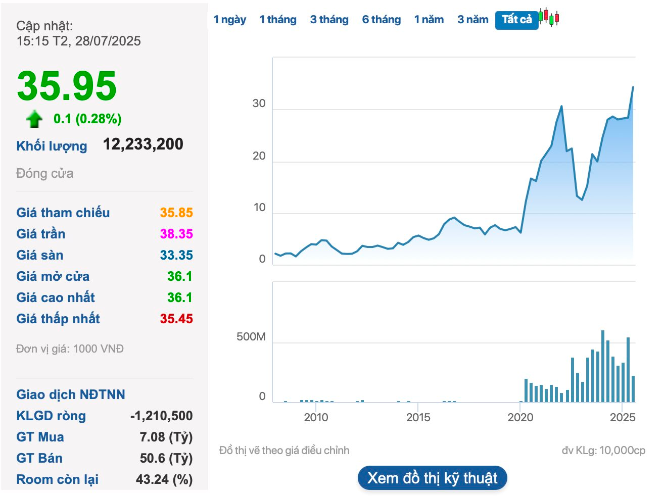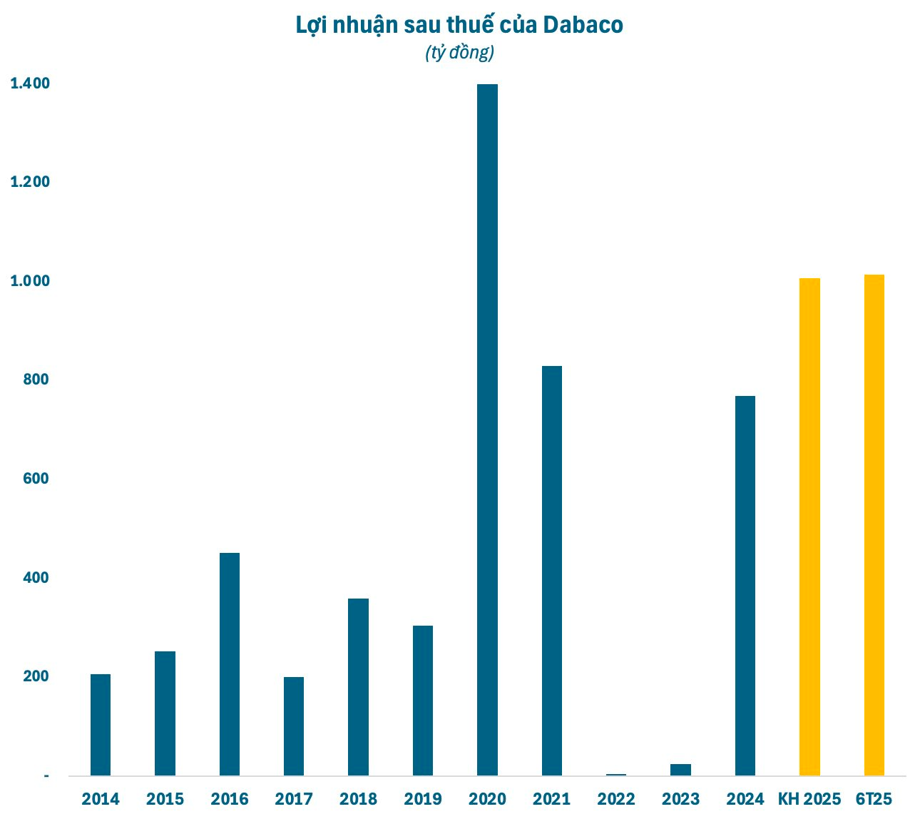 Luỹ kế 6 tháng đầu năm 2025, Dabaco ghi nhận doanh thu thuần đạt 7.429 tỷ đồng và lợi nhuận sau thuế đạt 1.015 tỷ đồng, lần lượt tăng 15% và 365% so với cùng kỳ năm ngoái. Với kết quả đạt được, doanh nghiệp này đã hoàn thành vượt chỉ tiêu lợi nhuận cả năm đề ra (1.007 tỷ đồng) dù mới đi một nửa chặng đường.