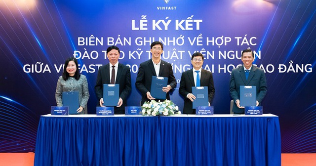 VinFast và 30 trường Đại học, Cao đẳng chuyên ngành kỹ thuật trên cả nước đã ký kết thỏa thuận hợp tác nhằm chuẩn hóa chương trình, giáo trình, tài liệu, học liệu, hướng tới mục tiêu phát triển nguồn nhân lực chất lượng cao, đáp ứng nhu cầu thực tiễn trong lĩnh vực sản xuất và sửa chữa ô tô điện.