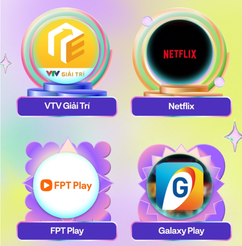 Netflix: Tham gia vào thị trường Việt Nam từ năm 2016, là nền tảng dịch vụ truyền hình trực tuyến có thu phí theo các gói khác nhau. Ưu điểm của Netflix là trải nghiệm mượt mà, tính năng tốt và luôn mang đến những bộ phim nước ngoài có chất lượng cao, đặc biệt là những series phim do chính Netflix tự tay sản xuất thu hút rất nhiều sự quan tâm từ người dùng Việt.
