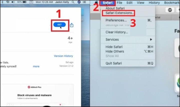 Bước 2: Nhấn vào mục Get ngoài cùng bên phải để tải về. Sau đó, bạn mở Safari lên và chọn vào mục S afari Extensions…