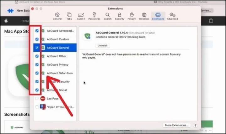 Bước 4: Tại đây, bạn nhấn tích vào các ô vuông tại những dòng có chữ AdGuard.