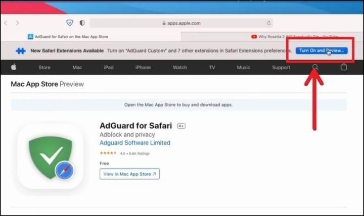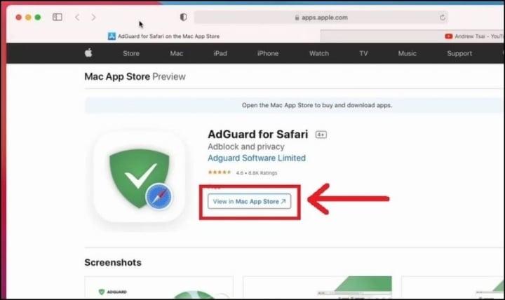 Bước 1: Truy cập vào link https://apps.apple.com/gb/app/adguard-adblock-privacy/id1047223162 để tải phần mềm về. Lúc này, bạn nhấn vào mục View in Mac App Store .