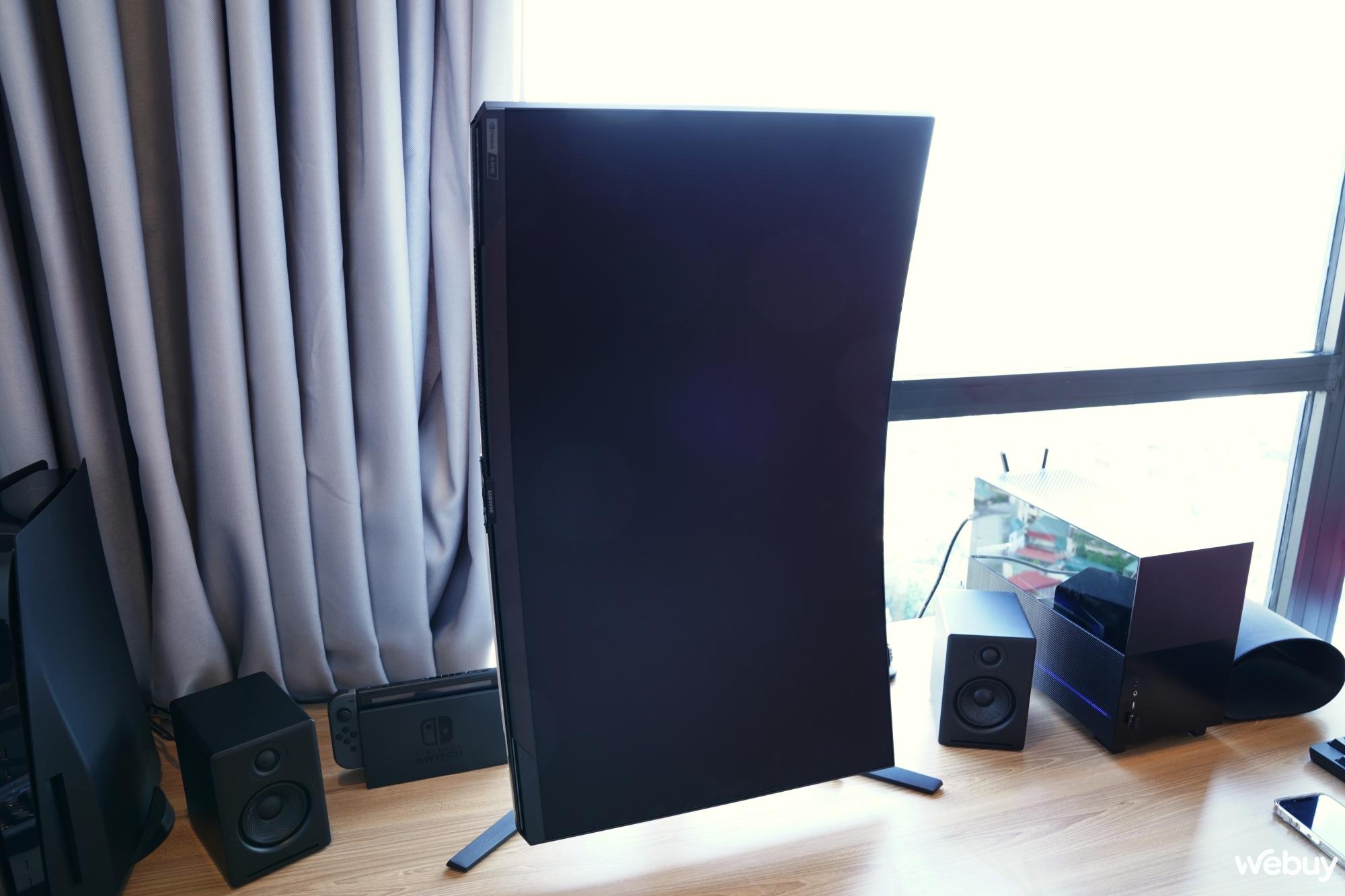 Với kích thước 32-inch cùng độ cong 1000R, Neo G8 là một chiếc màn hình có kích thước lớn cùng cân nặng 9kg khi gắn chân đế. Một điểm cộng là chân đế của chiếc màn hình này không quá chiếm diện tích. Tuy nhiên, tôi vẫn khuyến nghị một chiếc bàn có chiều rộng từ 80cm trở lên để đảm bảo thoải mái về diện tích mặt bàn cũng như khoảng cách từ mắt tới màn hình.