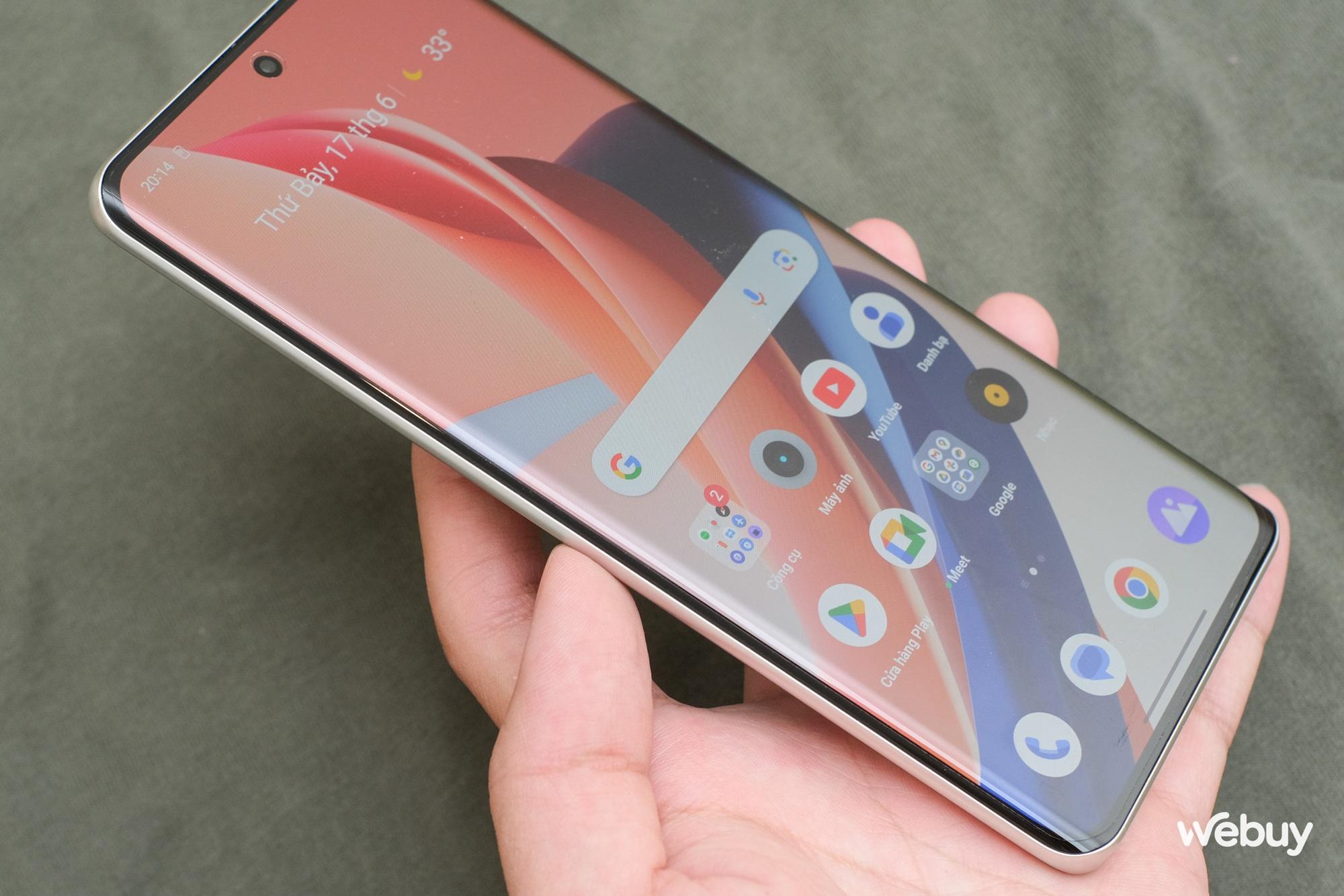 Như chúng tôi đã đề cập, màn hình của realme 10 Pro+ là màn hình cong ở 2 cạnh bên, một trong những yếu tố hiếm xuất hiện trên các dòng smartphone có mức giá 5 - 6 triệu đồng. Việc trang bị màn hình cong cạnh giúp máy trông cao cấp hơn, thao tác vuốt ở các phần rìa màn hình thoải mái không bị cấn, tuy nhiên điểm trừ là khó dán cường lực, nếu sử dụng các loại dán cường lực UV thì chi phí sẽ cao và không bền bỉ như các loại cường lực phẳng thường thấy