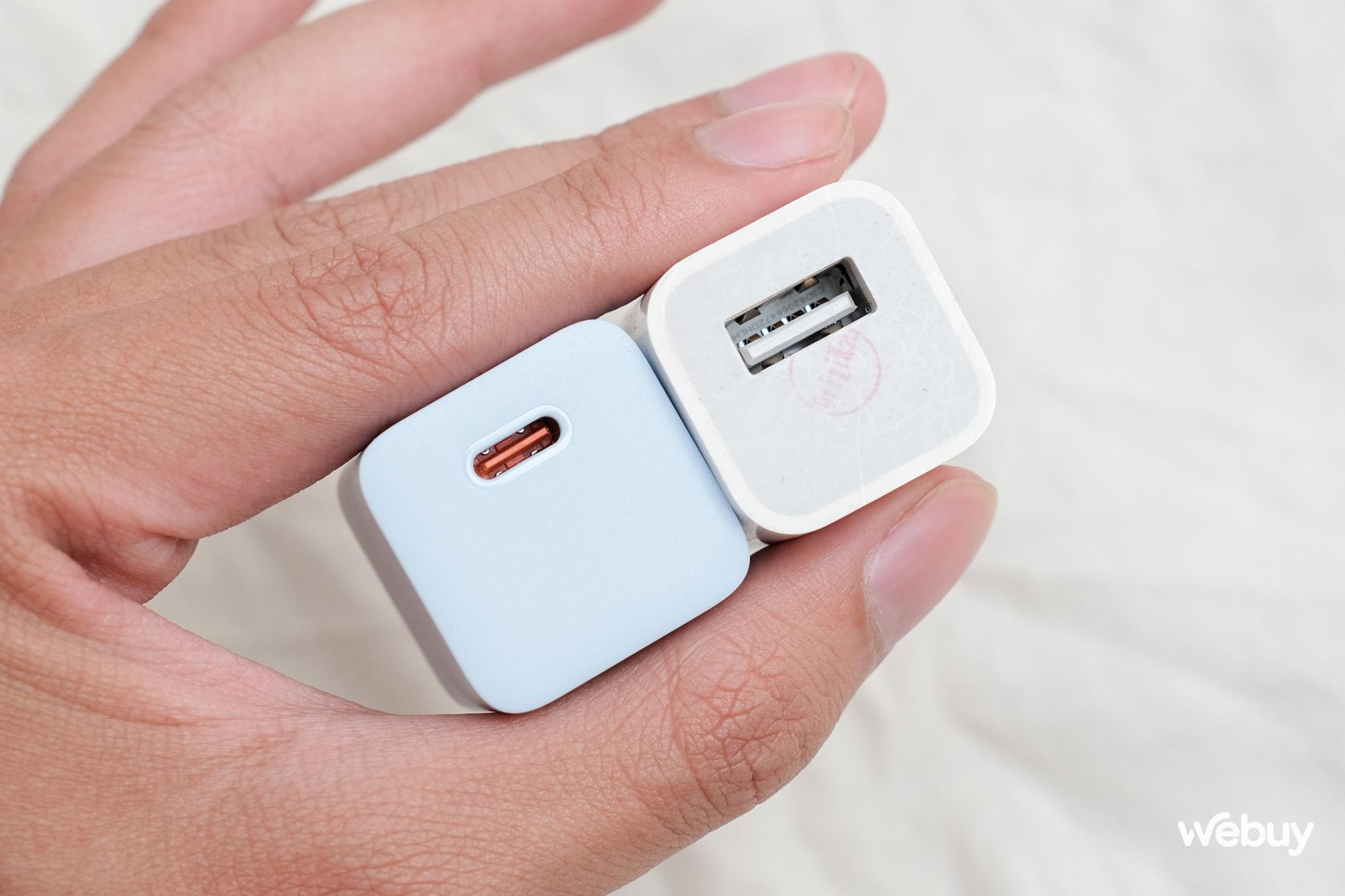 Phiên bản chúng tôi đang có trong bài viết này là phiên bản màu xanh. Dây cáp USB-C - Lightning cũng được thiết kế nhiều màu sắc. Ngoài ra, củ sạc còn có các màu sắc như trắng, đen, tím và màu cam hổ phách