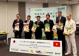 Ra mắt sản phẩm gạo thương hiệu Việt Nam thứ hai tại thị trường Nhật Bản, tháng 10/2024. Ảnh: TTXVN