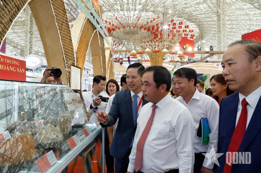 Lãnh đạo Bộ Nông nghiệp và Môi trường tham quan gian trưng bày các sản phẩm của ngành địa chất và khoáng sản Việt Nam tại Trung tâm Hội chợ triển lãm Việt Nam. |