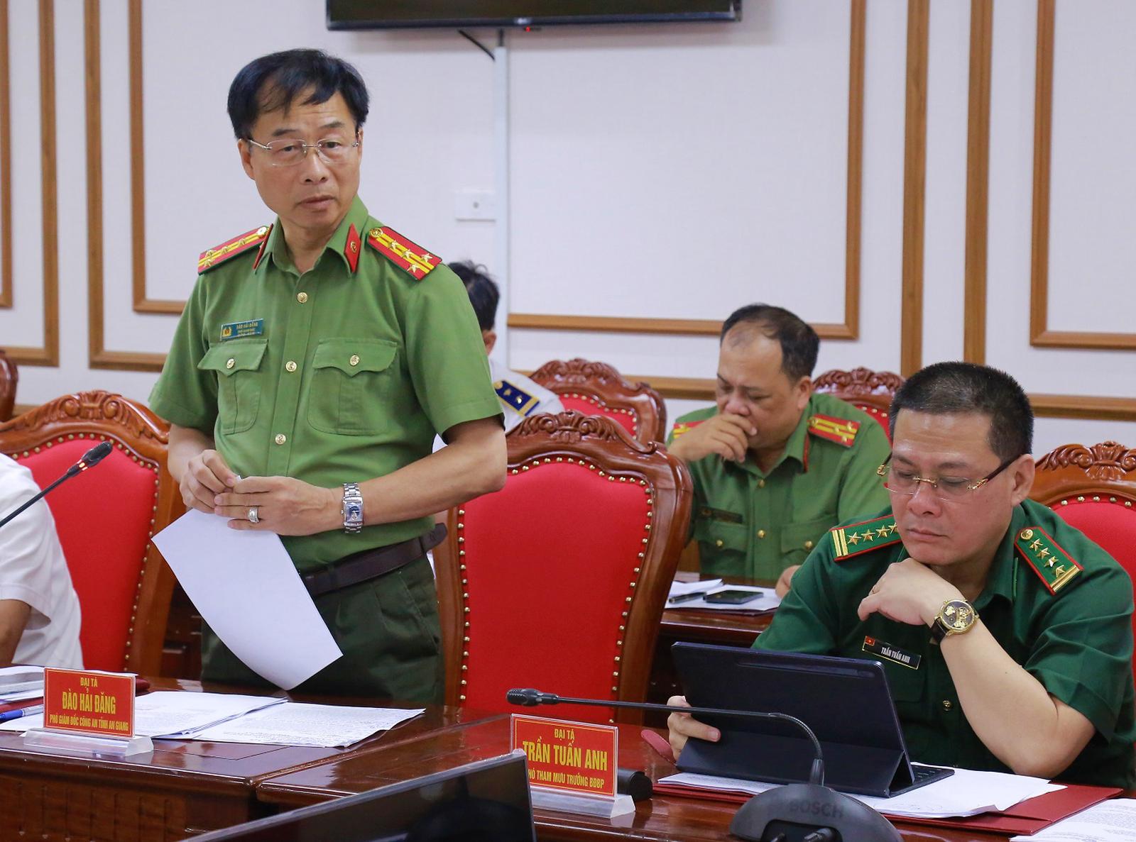 Đại tá Đào Hải Đăng, Phó Giám đốc Công an tỉnh An Giang phát biểu ý kiến tại hội nghị. Ảnh: Q.Vinh - V.Nhanh