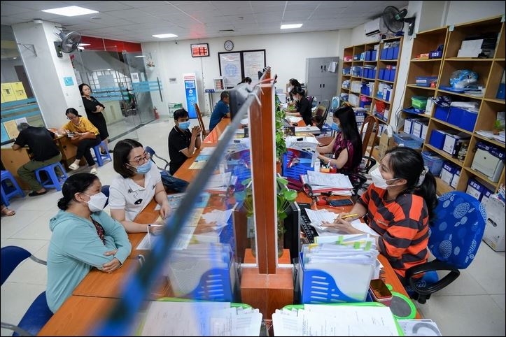 Cán bộ Bảo hiểm xã hội thành phố Hà Nội hướng dẫn người dân làm thủ tục. Ảnh: tuoitre.vn |