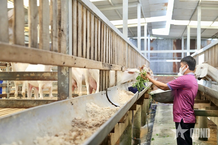 | Mô hình nuôi dê lấy sữa kiểu mới, áp dụng kỹ thuật tiên tiến của Hợp tác xã Đa Phước, xã Hưng Long. |