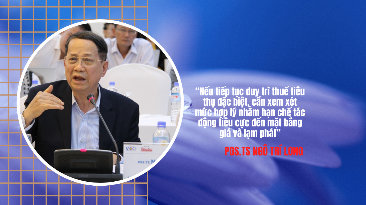 “Bộ Tài chính cần nghiên cứu, đánh giá kỹ lưỡng tác động của thuế tiêu thụ đặc biệt đối với doanh nghiệp và người tiêu dùng. Nếu tiếp tục duy trì, cần xem xét mức thuế hợp lý nhằm hạn chế tác động tiêu cực đến mặt bằng giá và lạm phát”, PGS.TS Ngô Trí Long nhấn mạnh.