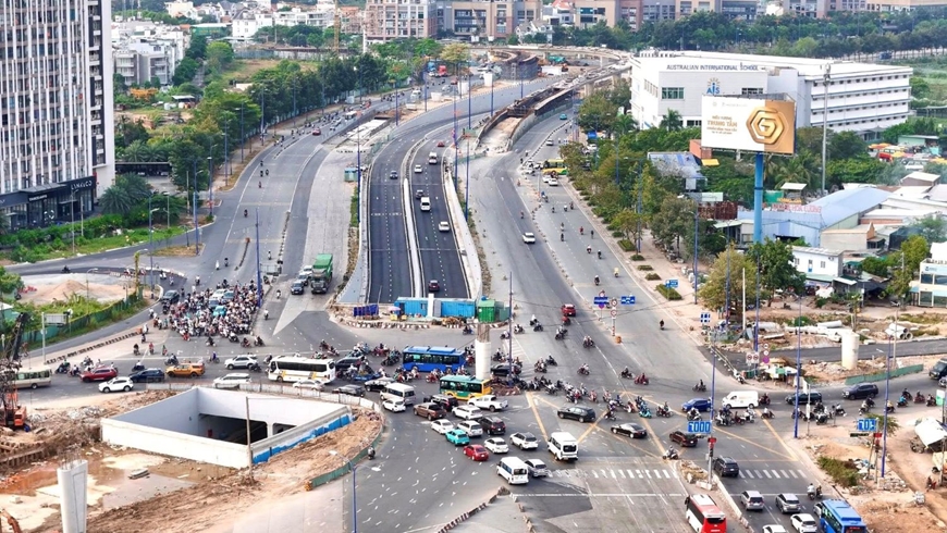 Nút giao An Phú là công trình giao thông trọng điểm của TP Hồ Chí Minh, dự kiến về đích trong quý II-2026. Ảnh: TRẦN ÚT |