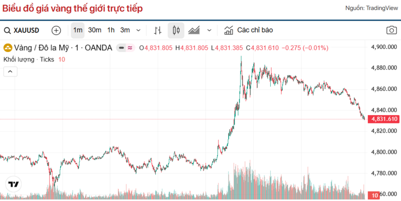 Theo Kitco, giá vàng thế giới ghi nhận lúc 4h30 hôm nay theo giờ Việt Nam giao ngay ở mức 4,831.61 USD/ounce. Giá vàng hôm nay đi ngang so với hôm qua. Quy đổi theo tỷ giá USD trên thị trường tự do (26.545 VND/USD), vàng thế giới có giá khoảng 154,6 triệu đồng/lượng (chưa tính thuế, phí). Như vậy, giá vàng miếng SJC đang cao hơn giá vàng quốc tế khoảng 17,4 triệu đồng/lượng.