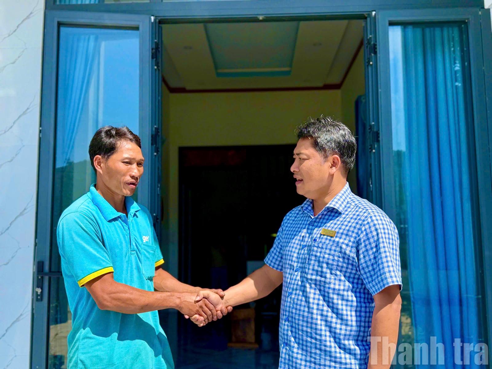 Cán bộ xã Krông Bông (Đắk Lắk) động viên, chúc mừng một hộ dân đã vươn lên phát triển kinh tế, trở thành hộ khá nhờ chủ động tìm kiếm mô hình sinh kế và được hỗ trợ vốn ưu đãi. Ảnh: NG