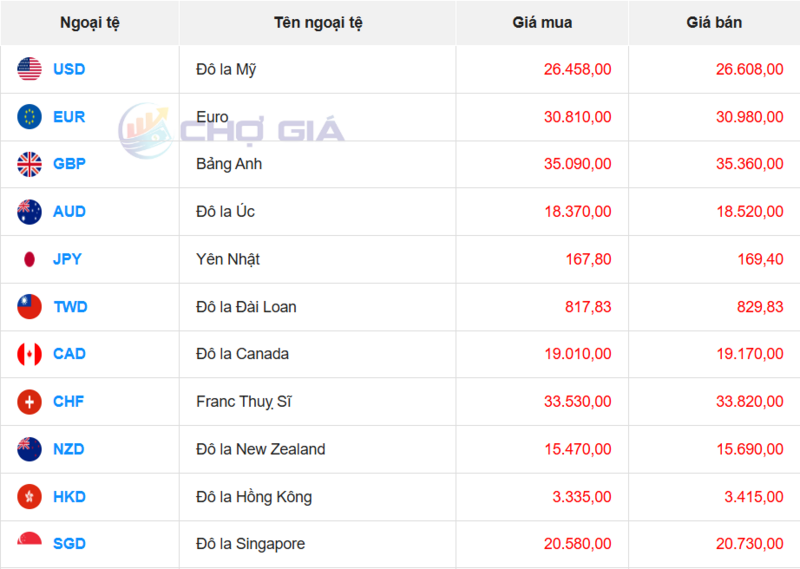 Ngân hàng HSBC đang bán chuyển khoản Đô la Mỹ với giá thấp nhất là: 1 USD = 26.093 VND