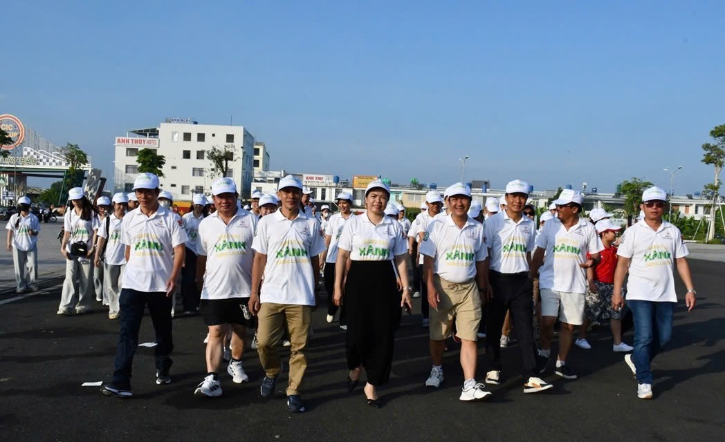 | CBCNV Công ty Điện lực An Giang và người dân trên địa bàn tỉnh đi bộ hưởng ứng Chiến dịch Giờ Trái đất 2026. Ảnh: PC An Giang. |