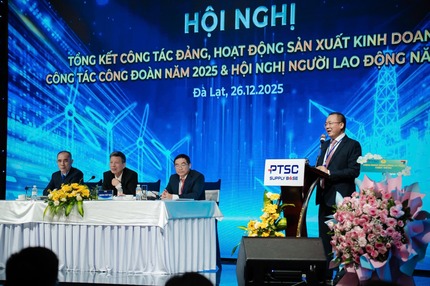 Phát biểu chỉ đạo tại hội nghị, ông Trần Hoài Nam – Ủy viên Ban Thường vụ Đảng ủy, Phó Tổng Giám đốc Tổng công ty PTSC đã thông tin về tình hình sản xuất kinh doanh và công tác lãnh đạo, điều hành của Tổng công ty cũng như của Tập đoàn trong thời gian qua. Ông ghi nhận và đánh giá cao những đóng góp tích cực của tập thể người lao động PTSC Supply Base vào kết quả chung của Tổng công ty, đồng thời định hướng một số nhiệm vụ trọng tâm nhằm giúp đơn vị thực hiện thắng lợi kế hoạch năm 2026, đặc biệt đối với các loại hình dịch vụ mới đang và sẽ được triển khai.