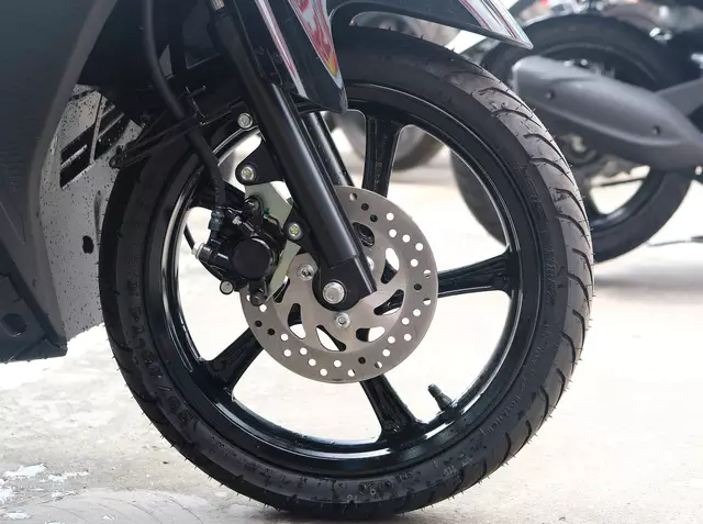 Mâm xe trước sau đồng kích thước 14 inch. Phía sau dùng phuộc đơn. Tuy nhiên, Yamaha Gear không trang bị công nghệ chống bó cứng phanh ABS.