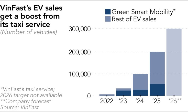 Trong khi đó, VinFast vẫn nhận được sự hậu thuẫn tài chính mạnh mẽ từ tập đoàn Vingroup và tỷ phú Phạm Nhật Vượng. Hãng đặt mục tiêu doanh số toàn cầu là 300.000 xe vào năm 2026 với kỳ vọng 20% đến 30% lượng xe giao sẽ đến từ thị trường quốc tế. Con số này tương đương với mức tăng trưởng gấp 3 lần doanh số xuất khẩu so với năm 2025.