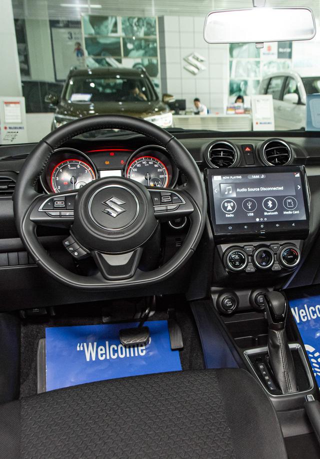 So với các xe cùng phân khúc, trang bị của Swift cũng tương đối hiện đại với đèn chiếu sáng bi-LED, đèn hậu LED, điều hoà tự động, đề nổ bằng nút bấm... Tuy nhiên, trang bị an toàn của mẫu xe này có phần thiếu sót khi không có cảm biến lùi và hệ thống cân bằng điện tử. Bên cạnh đó, ghế xe vẫn là loại nỉ, chưa thực sự phù hợp với khí hậu Việt Nam.