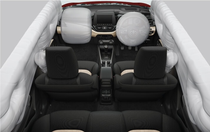 Một trong những điểm mạnh lớn nhất của Toyota Glanza 2025 là hệ thống an toàn vượt trội. Trong khi nhiều mẫu xe giá rẻ chỉ trang bị 2-3 túi khí, Glanza 2025 được trang bị tới 6 túi khí tiêu chuẩn, đảm bảo an toàn tối đa cho người lái và hành khách. Các tính năng an toàn khác bao gồm: