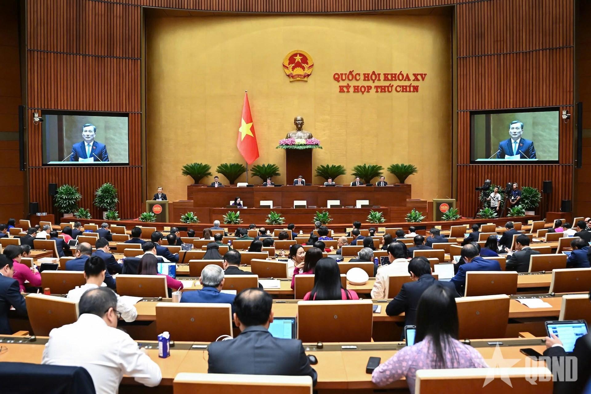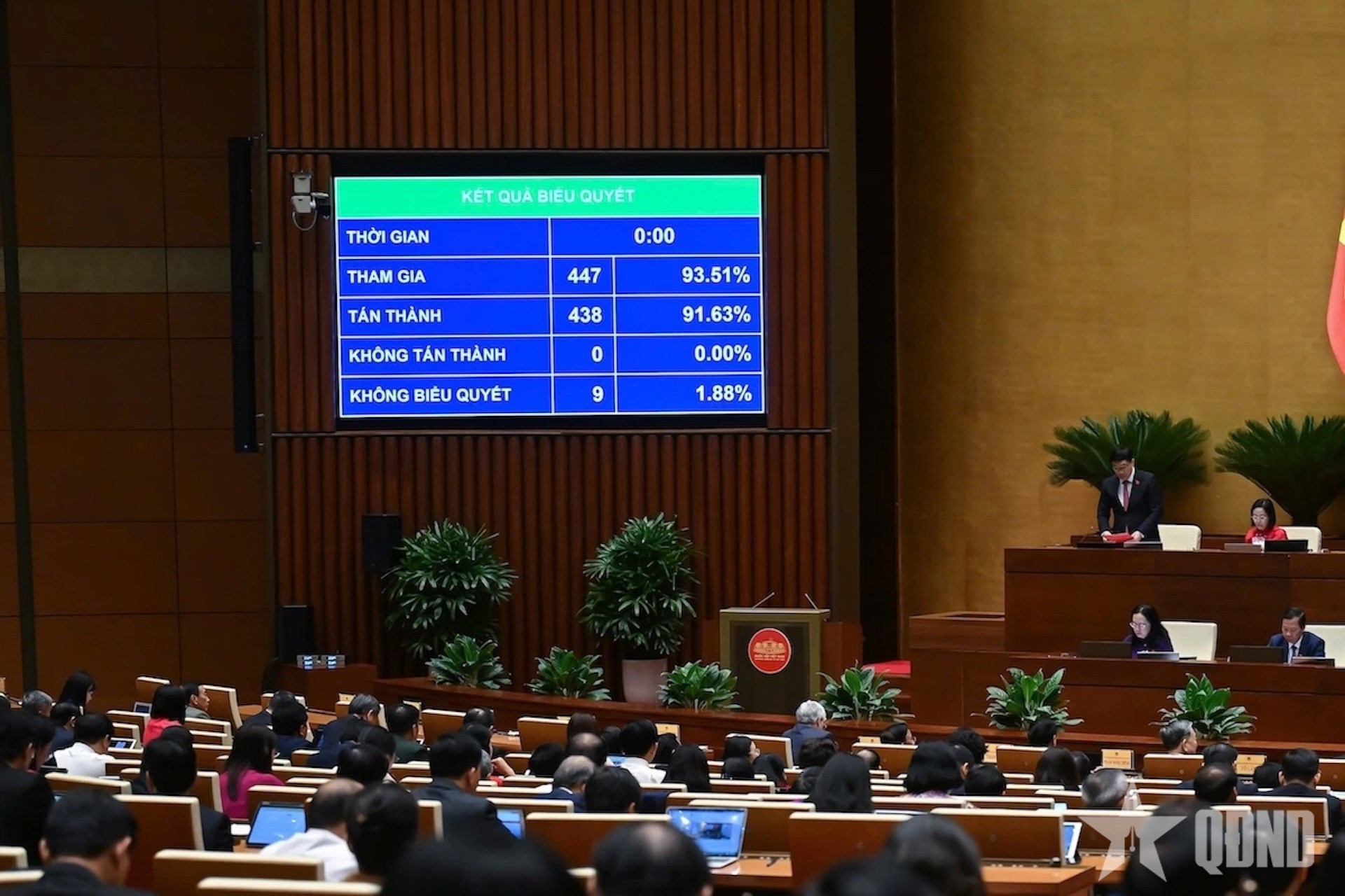 Sáng 27-6, tiếp tục Kỳ họp thứ chín, Quốc hội khóa XV, Quốc hội biểu quyết thông qua Luật sửa đổi, bổ sung một số điều của Luật Các tổ chức tín dụng với 435/443 đại biểu Quốc hội có mặt tham gia biểu quyết tán thành.