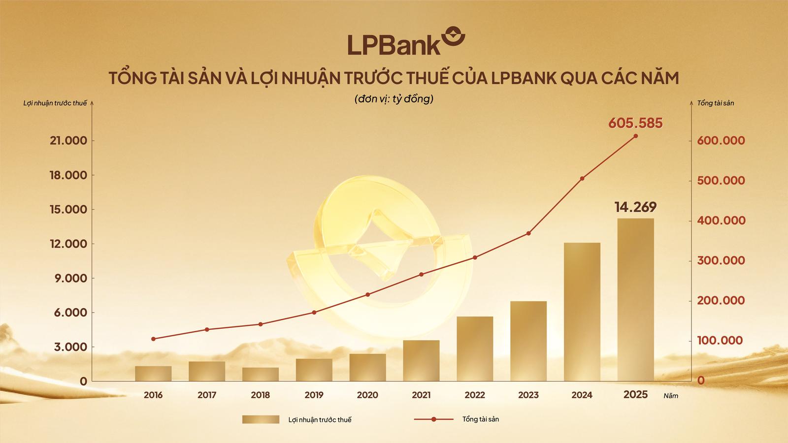 Trong năm 2025, bằng việc kiên định với chiến lược bán lẻ và tối ưu hóa hiệu quả hoạt động, LPBank đã ghi nhận kết quả kinh doanh bứt phá với tổng tài sản vượt mốc 605.000 tỷ đồng, lợi nhuận trước thuế tăng trưởng 17% so với năm 2024, riêng quý IV tăng gần 40% so với cùng kỳ.