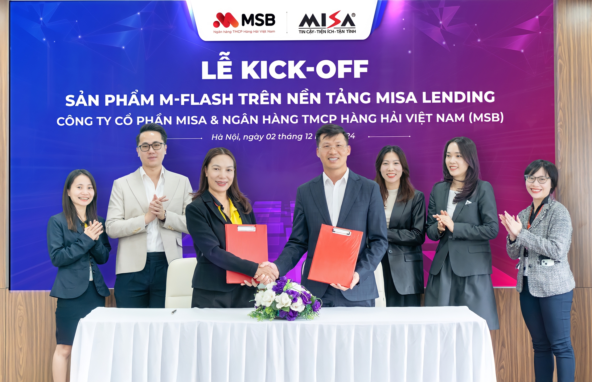 Ngày 02/12/2024, Công ty Cổ phần MISA (MISA) và Ngân hàng TMCP Hàng Hải Việt Nam (MSB) chính thức ra mắt giải pháp tài chính số M-Flash trên nền tảng kết nối vay vốn MISA Lending giúp doanh nghiệp tiếp cận vốn vay tín chấp lên tới 5 tỷ đồng nhằm hỗ trợ thanh khoản ngắn hạn và hoạt động kinh doanh cuối năm.