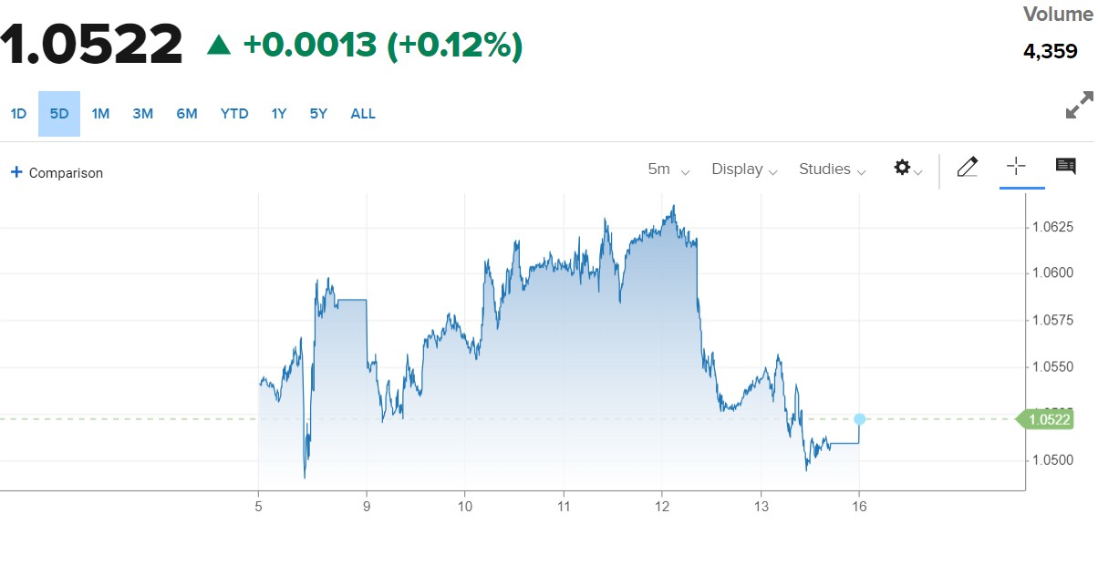Diễn biến tỷ giá EUR/USD trên thị trường thế giới (Nguồn: CNBC) |