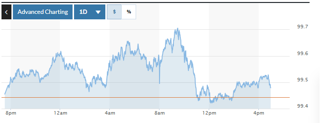 | Biểu đồ biến động Chỉ số DXY trong 24 giờ qua. Ảnh: Marketwatch |