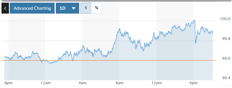 Biểu đồ biến động Chỉ số DXY trong 24 giờ qua. Ảnh: Market watch |