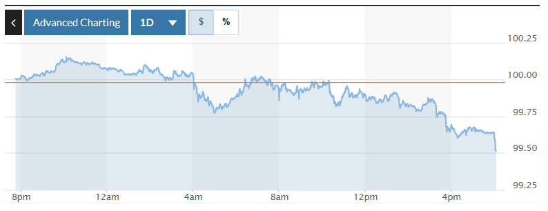 Biểu đồ biến động Chỉ số DXY trong 24 giờ qua. Ảnh: Market watch