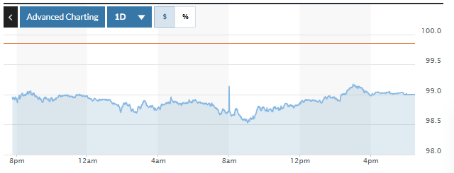 Biểu đồ biến động Chỉ số DXY trong 24 giờ qua. Ảnh: Market watch