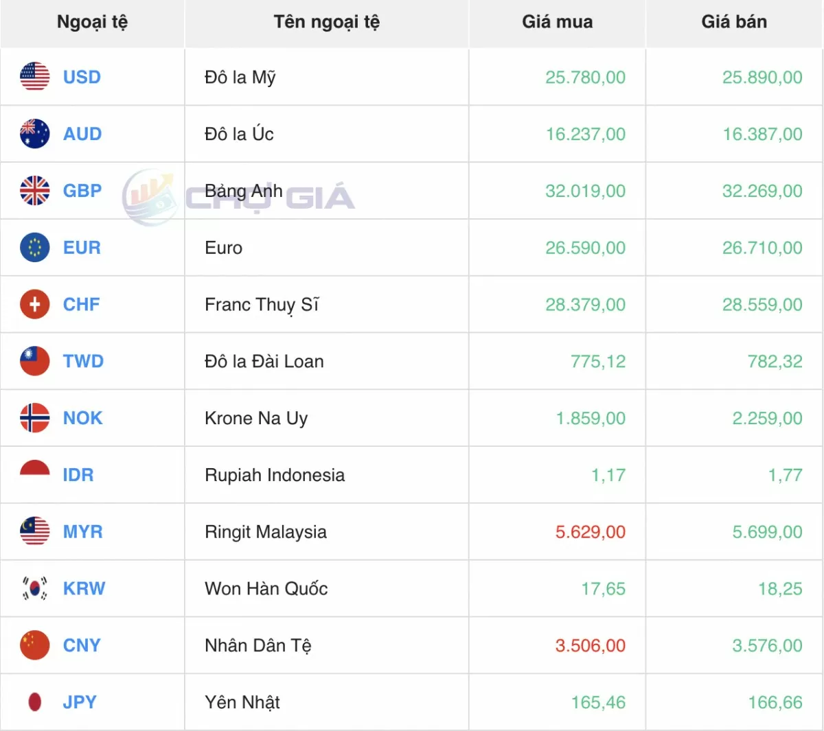 Ngoại tệ | Mua | Bán | ||