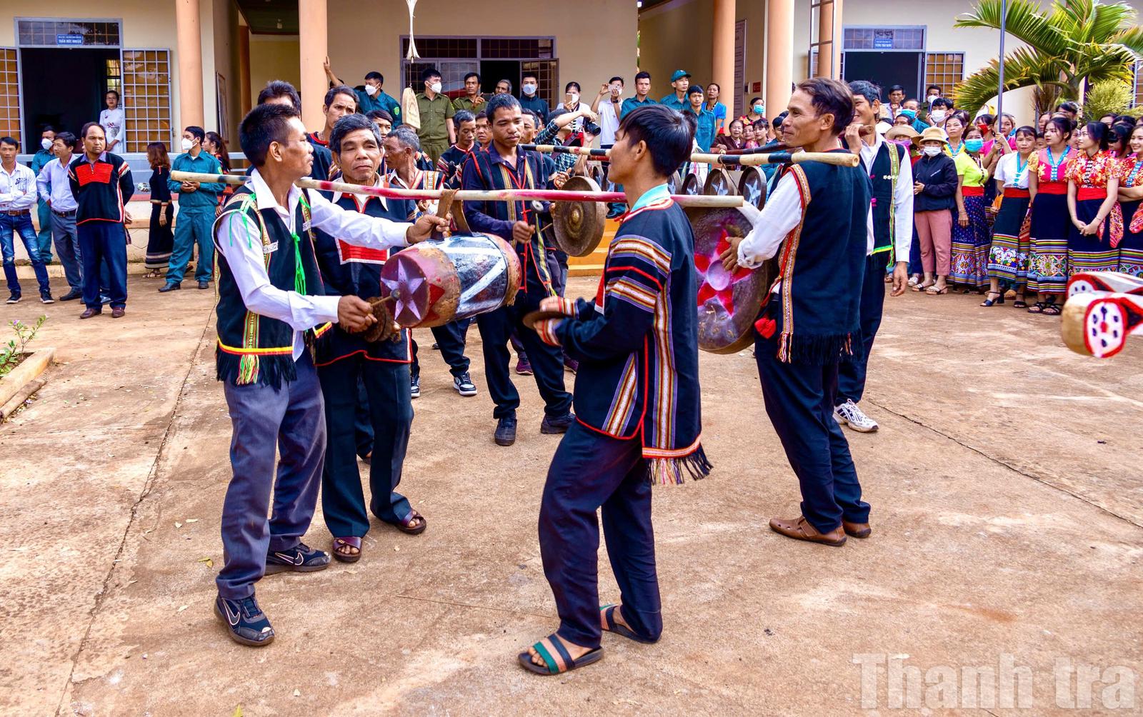 Nhờ sự đồng hành và vận động của người có uy tín, phong trào xây dựng đời sống văn hóa ở xã Ea Hiao, Đắk Lắk được duy trì, các đội cồng chiêng được thành lập, góp phần gìn giữ bản sắc văn hóa truyền thống. Ảnh: NG