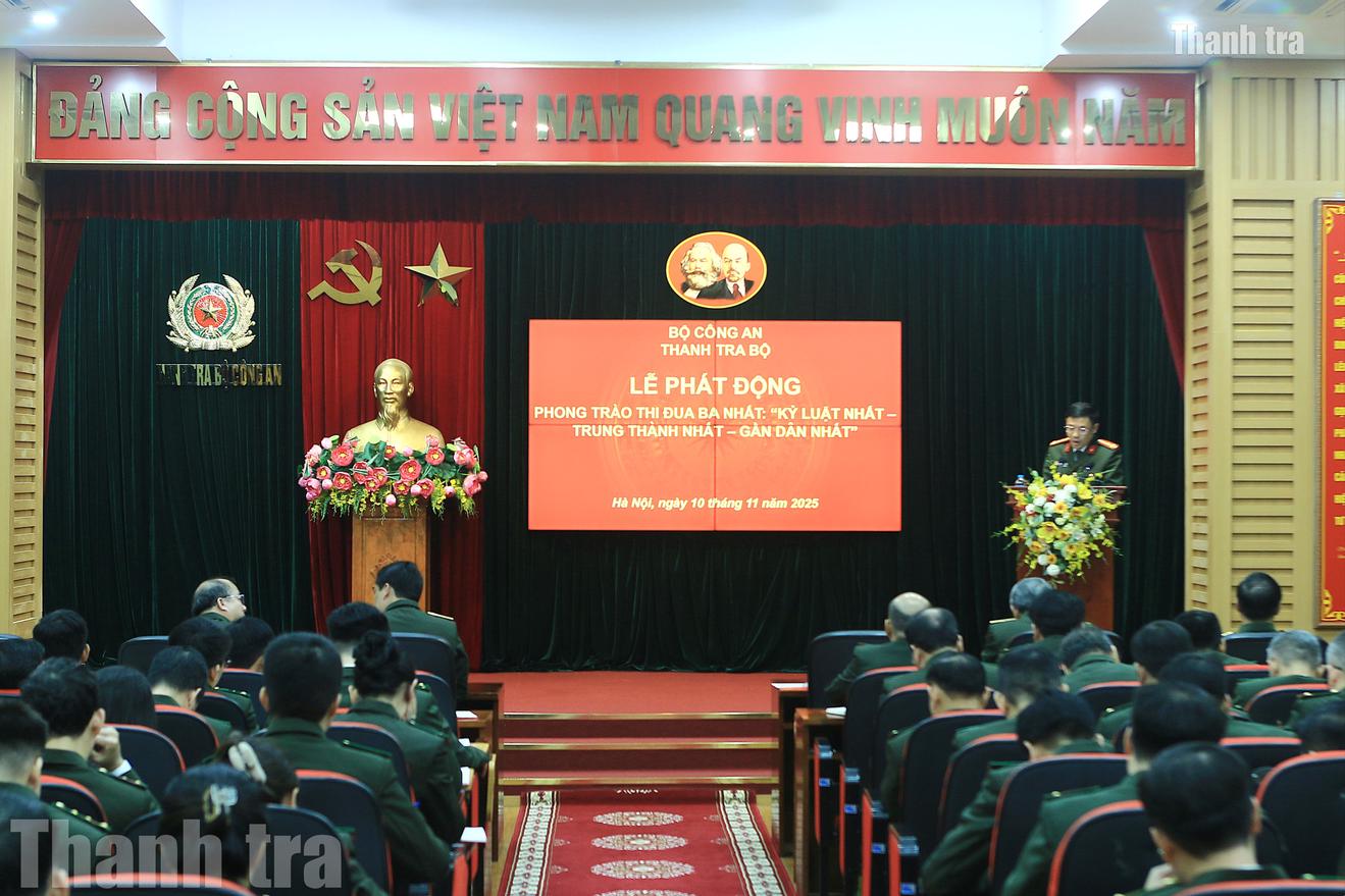 Ngày 10/11/2025, tại Hà Nội, Thanh tra Bộ Công an tổ chức lễ phát động phong trào thi đua Ba nhất “Kỷ luật nhất - Trung thành nhất - Gần dân nhất” trong lực lượng Công an Nhân dân (Phong trào thi đua). Hưởng ứng Phong trào thi đua, Thanh tra Bộ Công an phấn đấu là đơn vị gương mẫu, đi đầu trong toàn lực lượng Công an Nhân dân.