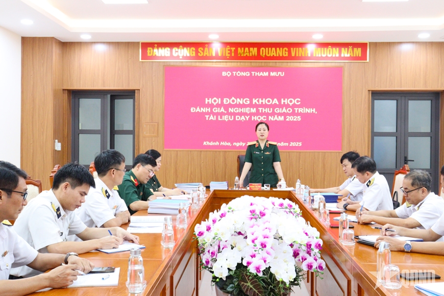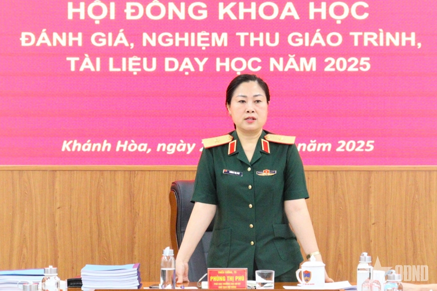 Thiếu tướng, TS Phùng Thị Phú, Phó cục trưởng Cục Quân huấn - Nhà trường, Bộ Tổng Tham mưu làm Chủ tịch Hội đồng. Tham gia buổi nghiệm thu có các thành viên Hội đồng khoa học, đại diện cơ quan chức năng của các học viện, trường quân đội và tác giả, nhóm tác giả biên soạn giáo trình, tài liệu dạy học năm 2025.