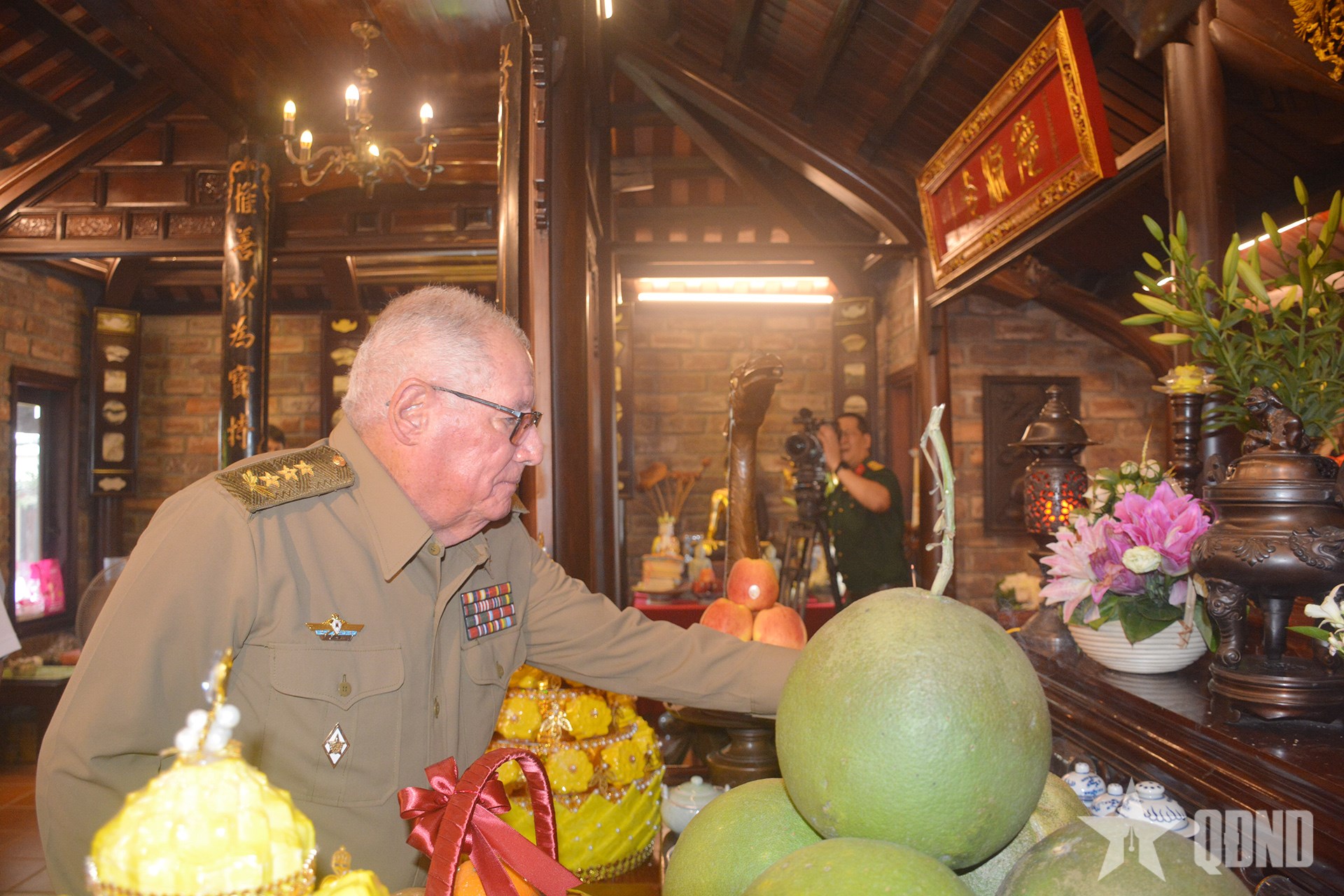 Tại đây, Thượng tướng Álvaro López Miera cùng đoàn bày tỏ sự kính trọng những công lao, đóng góp to lớn của Đại tướng Nguyễn Chí Thanh đối với sự nghiệp đấu tranh giải phóng dân tộc, xây dựng và bảo vệ Tổ quốc của Việt Nam.
