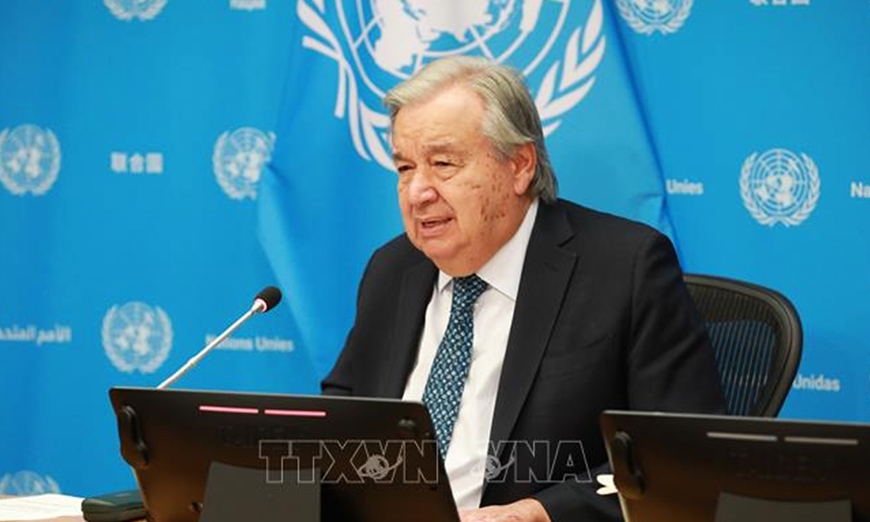 | Tổng Thư ký Liên hợp quốc Antonio Guterres phát biểu tại cuộc họp báo ở New York, Mỹ. |