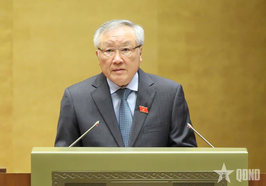 | Phó thủ tướng Thường trực Chính phủ Nguyễn Hòa Bình thay mặt Chính phủ báo cáo Quốc hội. |