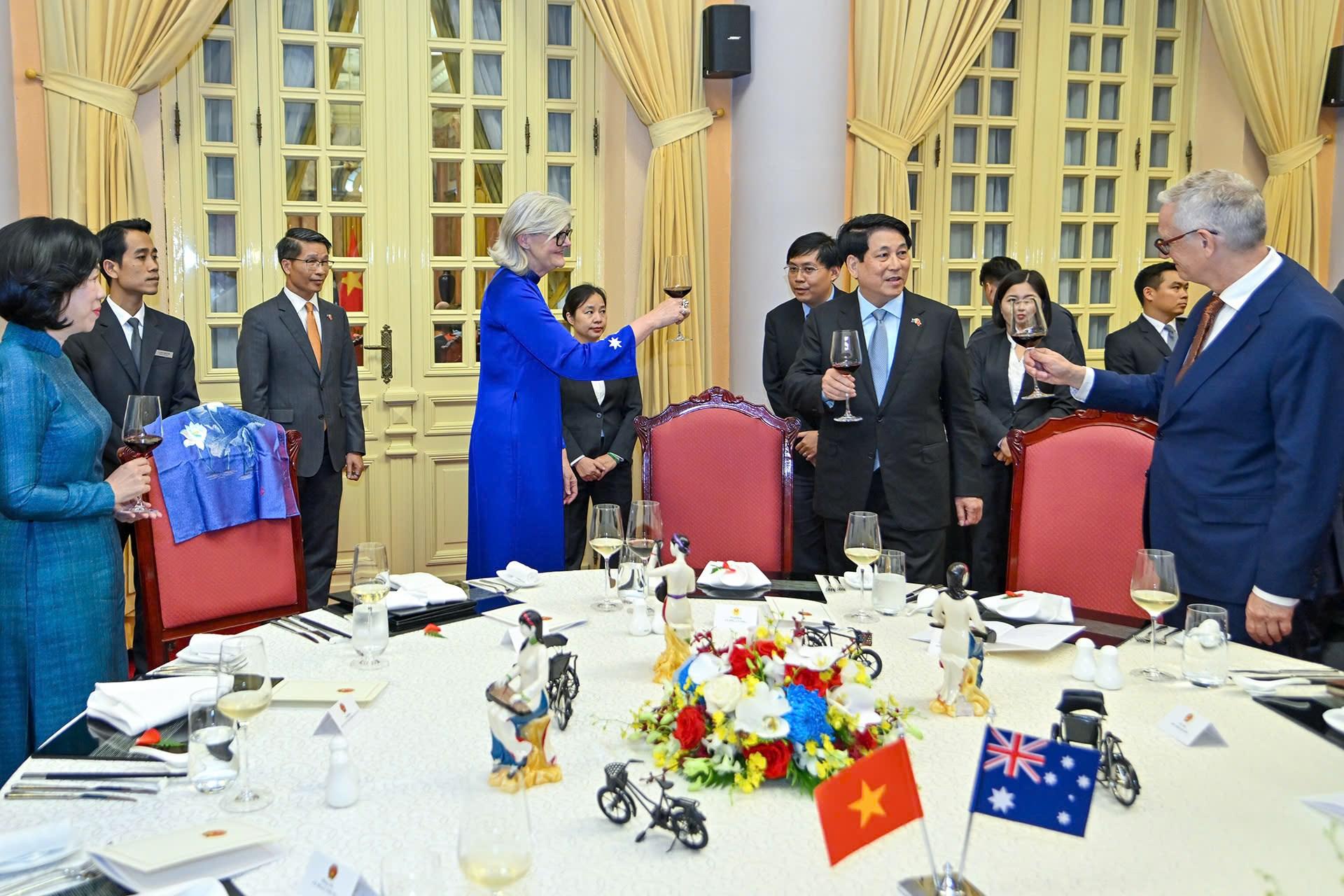 Tự hào về chặng đường đã đi qua trong lịch sử quan hệ hai nước, Chủ tịch nước bày tỏ vui mừng khi đón Toàn quyền Sam Mostyn với tư cách lãnh đạo cấp cao Australia đầu tiên thăm Việt Nam từ sau khi hai nước nâng cấp quan hệ lên Đối tác chiến lược toàn diện năm 2024. Với những thành tựu nổi bật trong hơn nửa thế kỷ qua và kết quả tốt đẹp của chuyến thăm Việt Nam lần này, Chủ tịch nước Lương Cường tin tưởng, quan hệ Đối tác chiến lược toàn diện Việt Nam - Australia sẽ tiếp tục phát triển lên tầm cao mới, mang lại lợi ích thiết thực cho nhân dân hai nước, đóng góp tích cực cho hòa bình, ổn định, hợp tác và phát triển ở khu vực và thế giới.