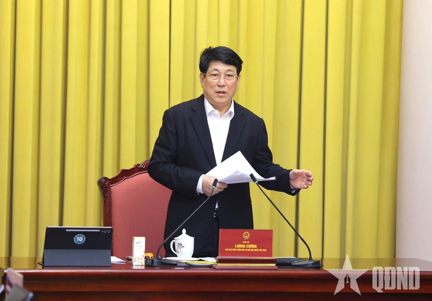 Chủ tịch nước Lương Cường phát biểu tại buổi làm việc. |