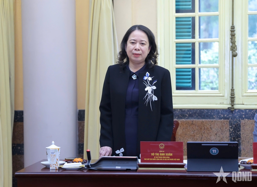 | Phó chủ tịch nước Võ Thị Ánh Xuân phát biểu tại buổi làm việc. |