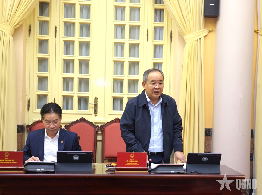 | Đồng chí Lê Khánh Hải, Chủ nhiệm Văn phòng Chủ tịch nước phát biểu tại buổi làm việc. |
