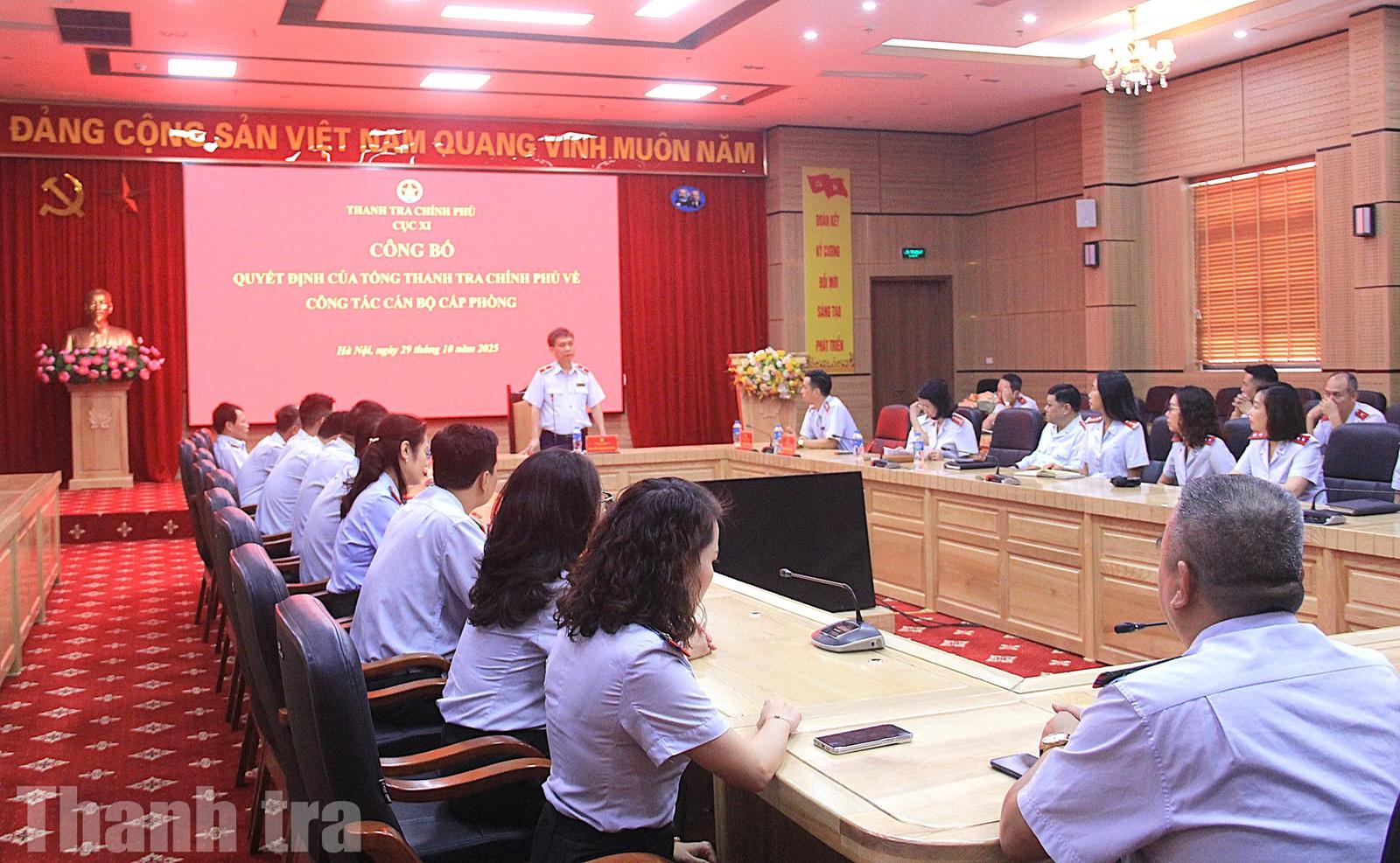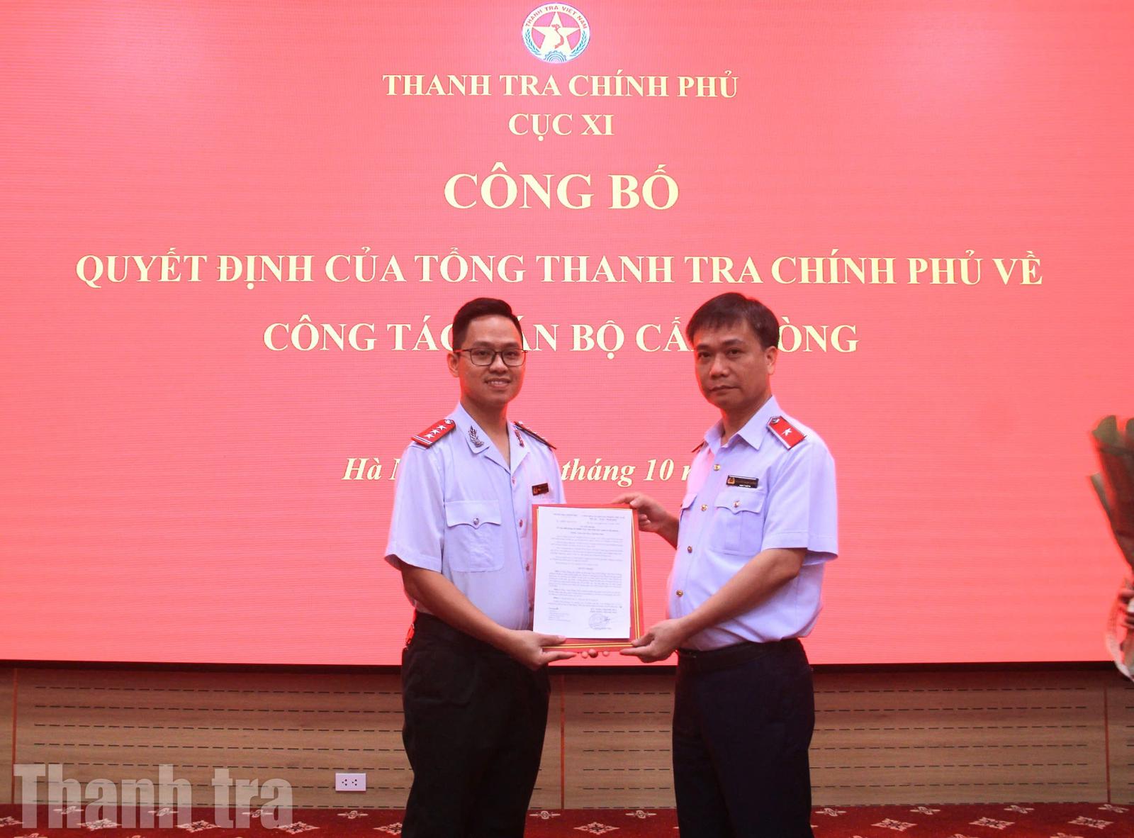 Tại buổi trao quyết định tiếp nhận, bổ nhiệm lãnh đạo cấp phòng, ông Nguyễn Mạnh Cường, Cục trưởng Cục XI đã trao Quyết định của Tổng Thanh tra Chính phủ về việc điều động, bổ nhiệm công chức lãnh đạo, quản lý cấp phòng Thanh tra lĩnh vực thể thao (Phòng 2) và Phòng Thanh tra lĩnh vực thông tin, báo chí (Phòng 4).