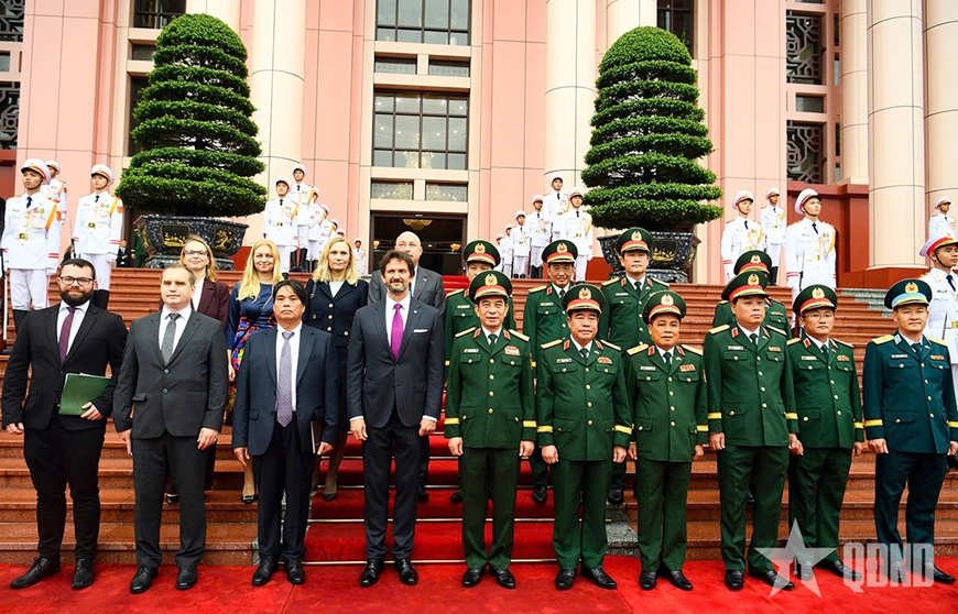| Đại tướng Phan Văn Giang chủ trì lễ đón Phó thủ tướng, Bộ trưởng Bộ Quốc phòng Slovakia Robert Kalinak. Ảnh: TUẤN HUY |